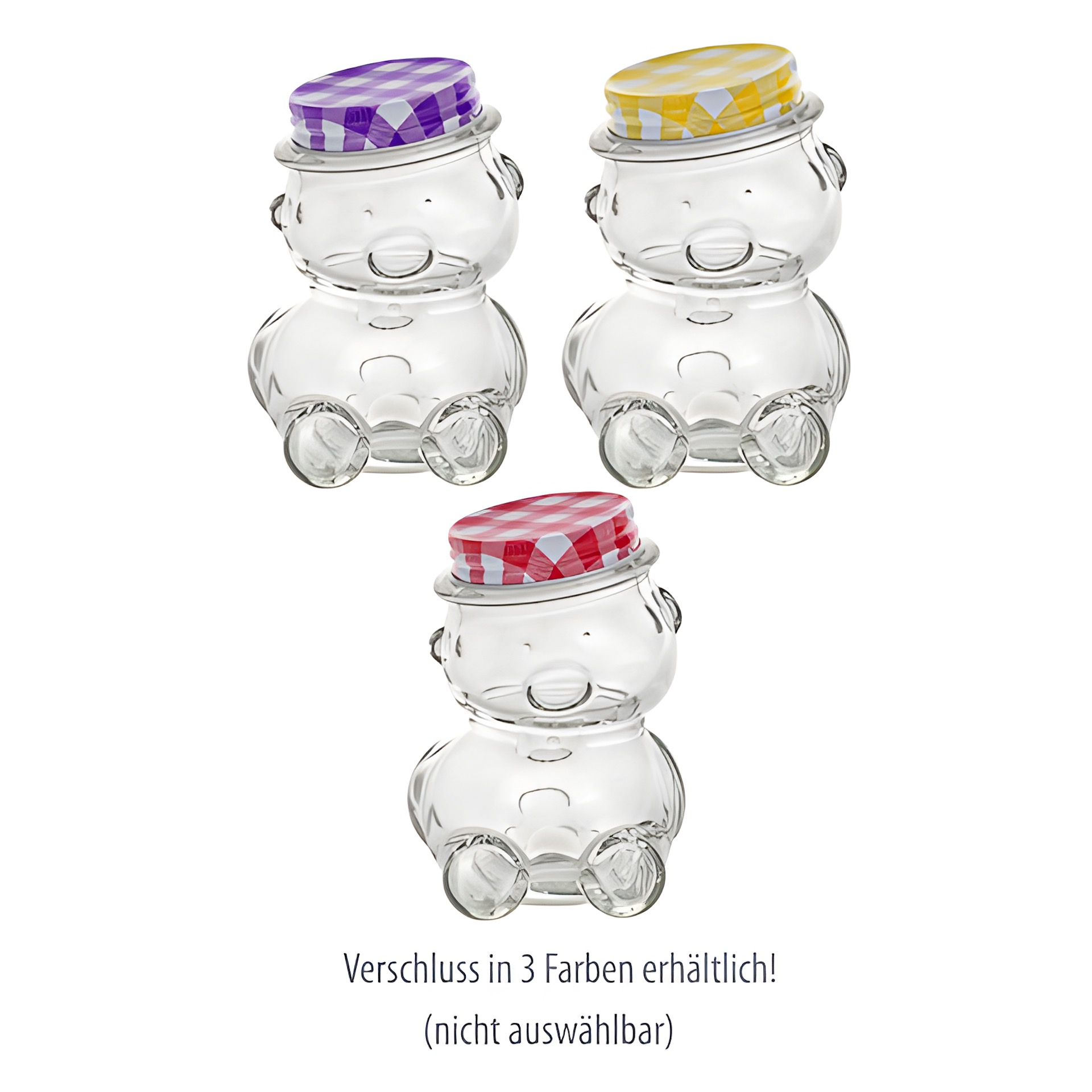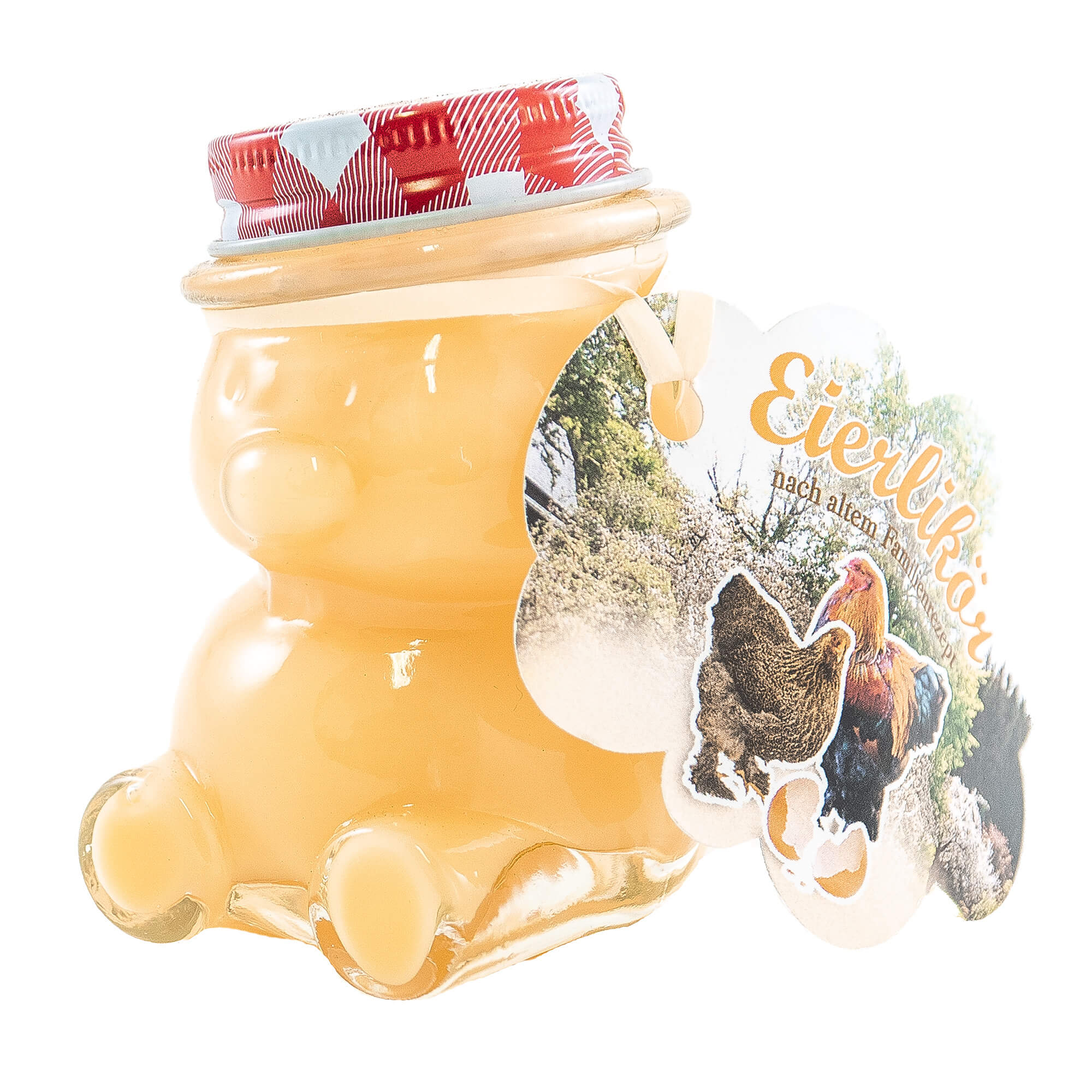 Glasflasche Bärchen (30ml) mit Eierlikör 20% und kariertem Schraubverschluss in 3 Farbvarianten lila, gelb und rot nicht wählbar!